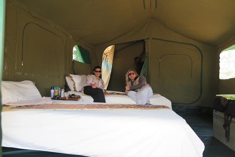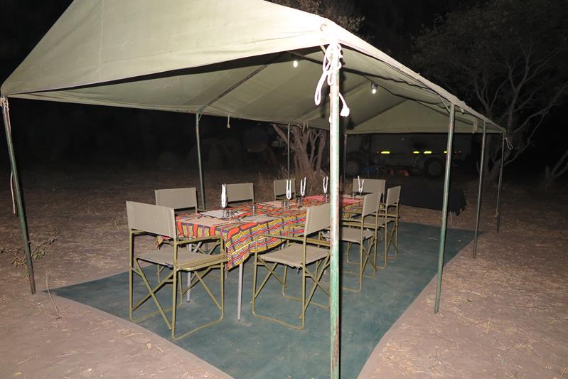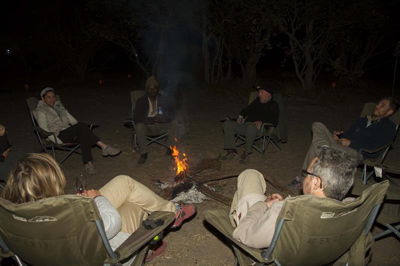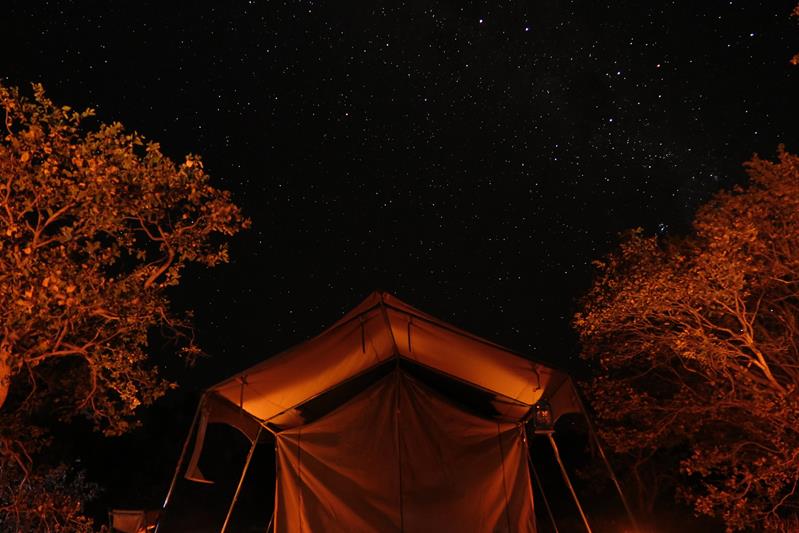 Llegamos a nuestro campamento de lujo al final del día y al poco, la luz del día desaparece. Nuestra mesa y la cena está lista. Una vez acabamos la cena, nos sentamos alrededor del fuego para disfrutar de nuestra primera noche bajo las estrellas.