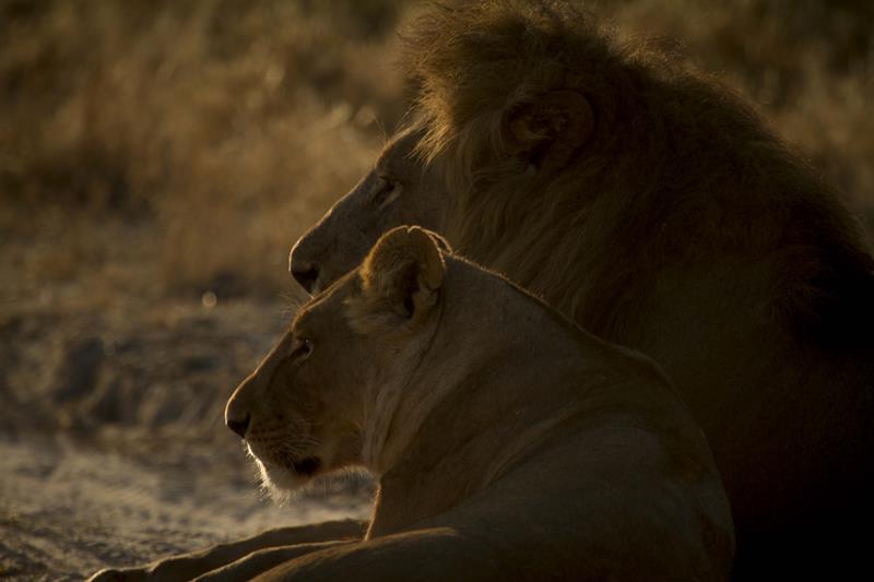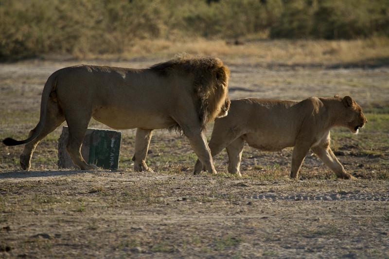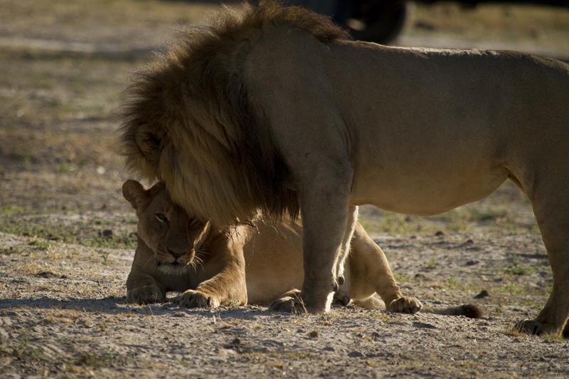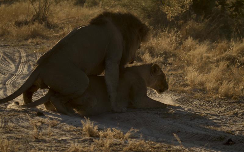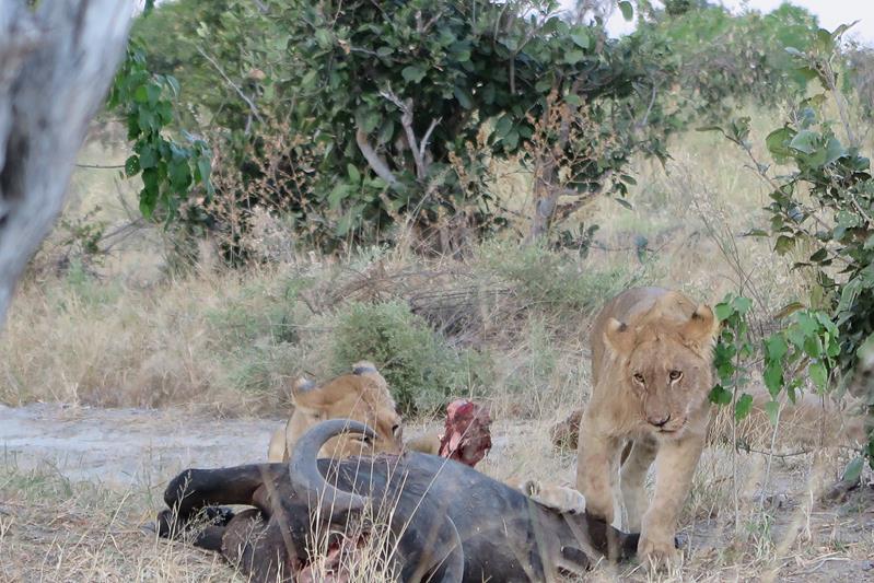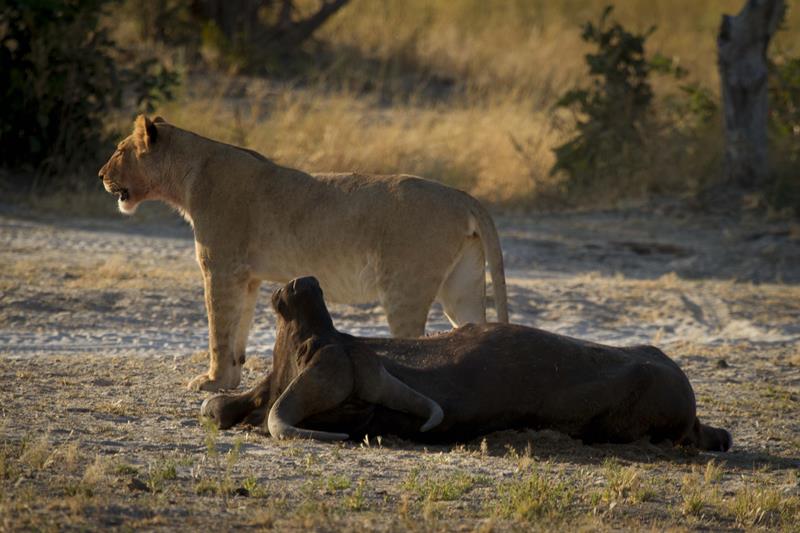 La segunda sorpresa es encontrar en el Marabu Pan, no una, sino 2 manadas de leones. Cada manada con un búfalo cazado la noche anterior, y cada manada con su macho dominante en proceso de apareamiento con una leona de su manada. Esta inusual situación nos ha proporcionado imágenes inolvidables.