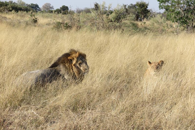 Dos días completos explorando la reserva de Moremi y sus diferentes áreas, nos dejan excelentes avistamientos de vida salvaje. Lo más espectacular siempre son los felinos: avistamiento de 2 manadas de leones machos. La primera localizada tras ofrecer asistencia a un vehículo averiado.