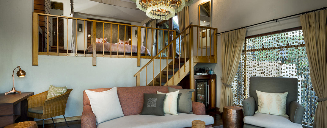 Cada una de las 2 Makwela Suites tienen aproximadamente 125 m2., y están construidas en 2 niveles con balcones privados, baños completos, así como duchas al aire libre, piscina privada de inmersión infinita, chimenea, sala de estar y estudio / biblioteca independiente. Cada suite tiene una cama de día separada en el salón / estudio adecuado para niños. El dormitorio principal tiene una cama King Size (que se puede dividir en gemelos), aire acondicionado, ventiladores de techo, una chimenea y mosquiteros.